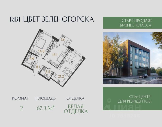 Просторная двухкомнатная квартира - Family- формат, в которой продумана каждая деталь для проживания семьи. Особенности лота: вид на лес потолки 3 м панорамные окна мастер-спальня большая кухня-гостиная раздельный санузел отделка White Box. ИНДИВИДУАЛЬНЫЕ УСЛОВИЯ РАССРОЧКИ! ВЫГОДНАЯ ЦЕНА ПРИ 100% ОПЛАТЕ! Загородная жизнь с городским комфортом! Малоэтажный ЖК и небольшое количество квартир на этажах создают атмосферу приватной резиденции. В ЖК бизнес-класса Ranta Residence нет студий: все квартиры имеют площадь от 36 м² до 99 м². Прописка Санкт-Петербург. БЛАГОУСТРОЙСТВО Закрытая охраняемая территория, современный ландшафтный дизайн от студии L.Buro, натуральные материалы в обустройстве, а также резидентам ЖК будут доступны: теннисный корт на крыше паркинга; коворкинг под открытым небом; финский павильон с живым очагом и шезлонгами; павильон с барбекю; гамаки, скамейки и лежаки; спортивные и детские площадки; три прогулочные аллеи, амфитеатр; водный арт-объект; сад скульптур и пряных трав. ИНФРАСТРУКТУРА Мы создаём атмосферу закрытого клуба и интересного комьюнити, только для резидентов ЖК будут доступны: Бэби-клуб с детской комнатой и заботливой няней; Спортивный зал с тренажерами; Зал для йоги и стретчинга; Коворкинг; Кофейня; Собственный детский сад и начальная школа. В пешей доступности расположены: ТЦ Курортный Продуктовые магазины Перекресток и Пятерочка Аптека Кафе быстрого питания 4 школы и 3 детских сада Взрослая и детская поликлиники Рестораны и парки. ЛОКАЦИЯ ЖК бизнес-класса Ranta Residence расположен в экологически чистом Курортном районе Санкт-Петербурга, занимает участок площадью 5,4 Га по адресу: г. Санкт-Петербург, г. Зеленогорск, ул. Кривоносовская 57Д. ЖК Ranta Residence граничит с лесным массивом, также поблизости находятся: Государственный природный заказник "Озеро Щучье"; Золотой пляж; Комаровский берег; Зеленогорский парк культуры и отдыха; Горнолыжный курорт Пухтолова гора всего в 15 минутах на автомобиле . Съезда на ЗСД находится в 18 км, до ближайшей станции метро Беговая путь на автомобиле займет в среднем 50 минут, а до центра Санкт-Петербурга путь составит в среднем 60 минут. От ЖК Ranta Residence до центра Санкт-Петербурга около 60 км (по Зеленогорскому или Приморскому шоссе — они идут параллельно). До "Лахта-центра" 45 км и 45 минут в пути. В 15 минутах от ЖК на Вокзале Зеленогорск можно сесть на Ласточку, которая за 55 минут доезжает до Финляндского вокзала, там же есть автобусная остановка, от которой можно доехать к станциям метро Беговая и Черная речка" - этот путь займёт около 1,5 часа. Хотите узнать подробности? Звоните в Отдел продаж, наши специалисты ответят на все интересующие вас вопросы! #Зеленогорск, #Курортный район, просторная планировка, #малоэтажный, закрытый охраняемый двор, #бизнес-класс, панорамные окна, потолки 3 метра.