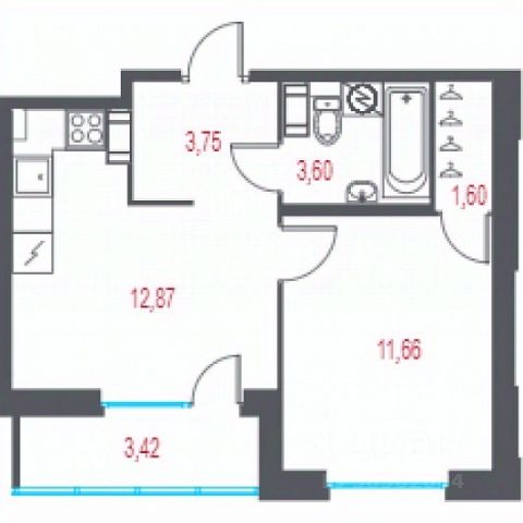 Общая площадь квартиры: 44,3 кв.м., площадь кухни: 6,5 кв.м., площадь комнат: 14,5 + 12,3 кв.м., площадь коридора: 6 кв.м., сан/узлы раздельные, + Застекленный Балкон: 3 кв.м.