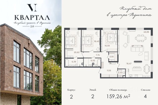 "VI Квартал" клубный проект, состоящий из четырех трехэтажных корпусов, рассчитан на 76 квартир и 98 машиномест в подземном паркинге. "VI Квартал" расположен в городе Пушкин, на ул. Новая, 20, в шаговой доступности от Екатерининского дворца. Комплекс предусматривает квартиры от 54 до 160 м2 с просторными планировками от 1 до 3 спален, с панорамными окнами и высокими потолками от 3 до 3,8 м.