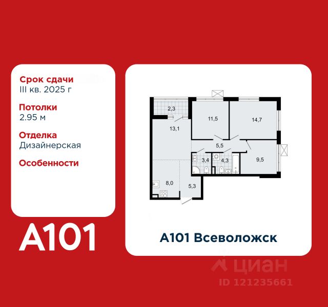 Продается 2-комнатная квартира в ЖК "ЛСР. Ржевский парк" на 2 этаже. Общая площадь составляет 50.00 кв. м. Квартира с чистовой отделкой. Жилой комплекс "ЛСР. Ржевский парк" располагается по адресу Ленинградская область, Всеволожский район, Ковалёво пос.. ЛСР. Ржевский парк - современный масштабный эко-проект: с пешеходными бульварами и велодорожками, площадками для спорта и отдыха в 30 минутах от центра Санкт-Петербурга. Расположение комплекса: • 13 минут до ж/д станции "Ковалёво"; • 30 минут до центра Санкт-Петербурга на автомобиле; • 26 минут до Финляндского вокзала. Квартира сдается с готовой отделкой из современных экологичных материалов: ламинированные межкомнатные двери, двухкамерные стеклопакеты, флизелиновые обои, качественный матовый ламинат с фактурой дерева, керамическая плитка. Между домами будут устроены бульвары, пешеходные и велодорожки, игровые и спортивные площадки, зоны отдыха для детей и взрослых. На первых этажах находятся колясочные, магазины, кафе и сервисные службы. На территории построят 4 школы, 9 детских садов, 2 спортивных комплекса, поликлинику, станцию скорой помощи и пожарное депо. Первый детский сад откроется уже в 2025 году. Преимущества комплекса: • Рядом лесопарк и Ладожское озеро • Живописные виды из окон • Безбарьерная среда • Развитая социальная инфраструктура • Умный дом • Двор без машин Успейте приобрести квартиру на выгодных условиях! Чтобы узнать подробности, обращайтесь за консультацией по телефону. Продам 2-комнатную квартиру с отделкой в готовой новостройке рядом с метро Проспект Большевиков.