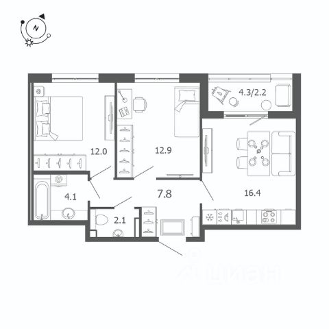 Продаётся 2-комнатная квартира в сданном доме (Старорусский пр-т, 3к2 (Дом 1)), срок сдачи: II-кв. 2025, общей площадью 41 кв.м., на 12 этаже.
