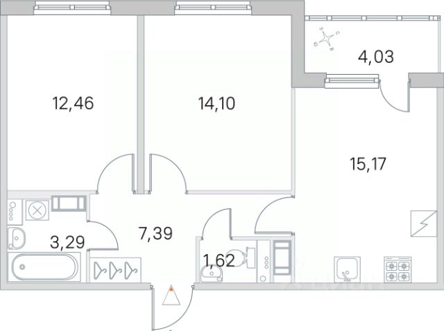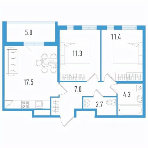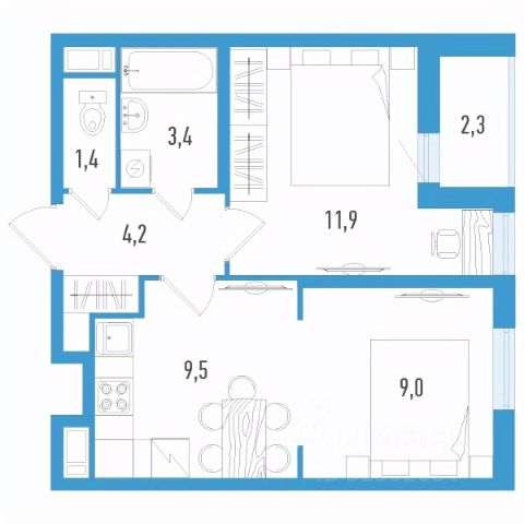 Продаётся 2-комнатная квартира в сданном доме (Старорусский пр-т, 3к2 (Дом 1)), срок сдачи: II-кв. 2025, общей площадью 40.9 кв.м., на 5 этаже.