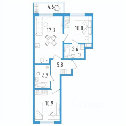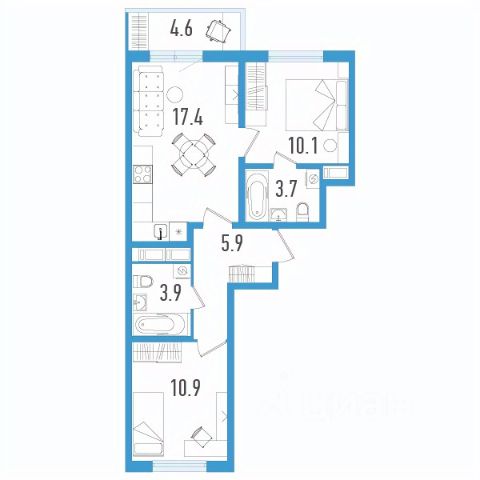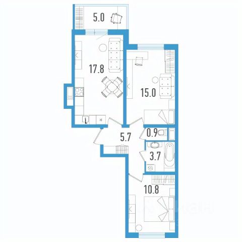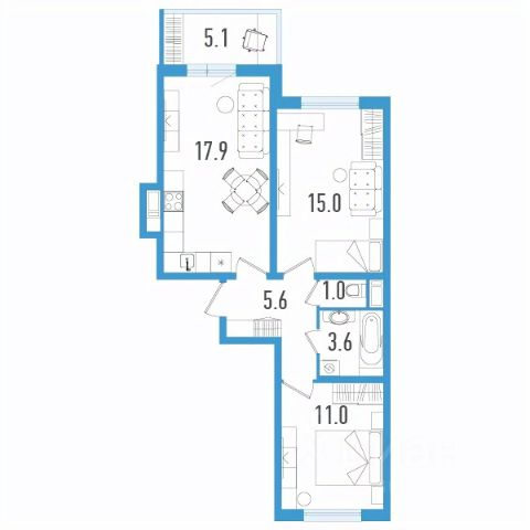 Продаётся 2-комнатная квартира в сданном доме (Старорусский пр-т, 3к2 (Дом 1)), срок сдачи: II-кв. 2025, общей площадью 55.3 кв.м., на 6 этаже.