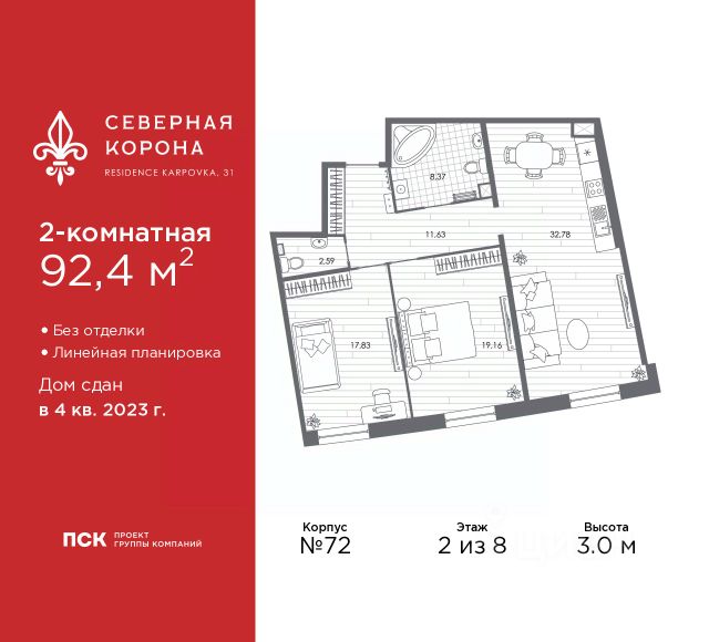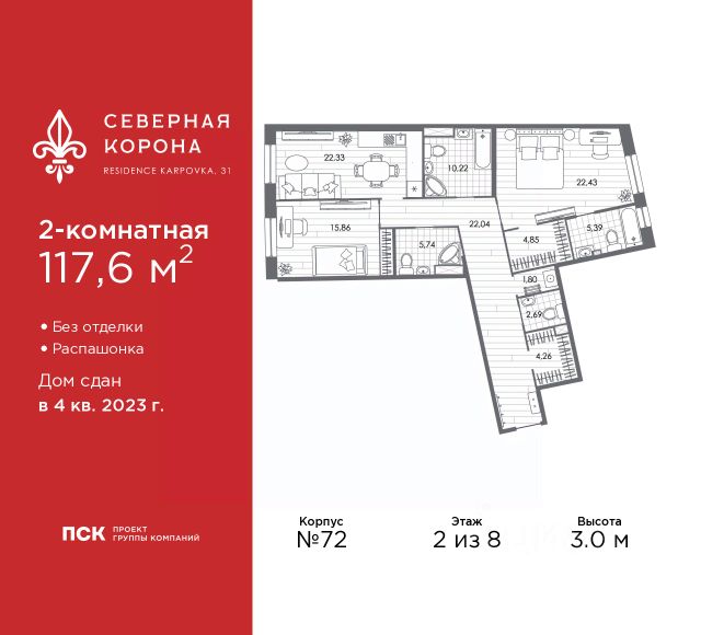 Продаются 2-комн. апартаменты в ЖК "Северная корона" на 6 этаже. Апартаменты без отделки, после оформления собственности можно делать ремонт. Общая площадь: 76.6 кв.м., жилая: 36 кв.м., площадь просторной кухни-столовой: 20.5 кв.м. Угловая квартира, идеально подойдет любителям тишины и панорамных видов. В апартаментах один совмещенный и один раздельный санузел. Высота потолков 3.3 м. 3 корпус дома "Северная Корона" представляет собой реконструкцию исторического здания доходного дома М.К. Покотиловой. Доходный дом строился в неоклассическом стиле с рустированными пилястрами, балюстрадой, барельефами в виде путти, ваз и сатиров, а также маскаронами львов в замковых камнях арок первого этажа. Основное здание было четырехэтажным, а боковые крылья трехэтажными. Данное решение ступенчатой композиции было продиктовано близостью Карповского переулка более высокую часть архитектор увел вглубь участка. Конструкция здания производилась согласно канонам неоклассической архитектуры: массивные стены достигают толщины в 1 метр, а высота потолков доходит до 3,4 метра. Кроме того, на первом и втором этажах выполнены сложные окна двойные и тройные. Они состоят из двух и трех оконных проемов, которые объединены общими декоративными элементами в виде барельефов. Апартаменты находятся в корпусе 3. Дом монолитно-блочный, одноподъездный, высотой 7 этажей. В подъезде 3 грузовых лифта. Строительство окончено, дом сдан в 4 квартале 2023 года. Оформление сделки по договору купли-продажи. В шаговой доступности от дома имеются станции метро (расстояние по прямой): "Петроградская" (500 м), "Чкаловская" (1.3 км), "Горьковская" (1.7 км), "Чёрная речка" (1.7 км), также недалеко от этого корпуса расположены станции метро: "Чернышевская", "Спортивная". Премиальный жилой комплекс "Северная корона" расположился в парадной части Петроградской стороны на пересечении ее главного проспекта — Каменноостровского и набережной реки Карповки. Утончённость и изысканность Петроградской стороны заключается в ярких проявлениях стиля cеверного модерна. Архитектура премиального дома "Северная корона" — это современное воплощение и новое развитие архитектуры северного модерна. Особенность и уникальность дома в его протяженности вдоль реки Карповки. Фасад исключает монотонность, линии интегрированы в канву курдонера и внутренних общественных пространств, обращённых как в сторону Каменноостровского проспекта, так и Иоановского монастыря. Все квартиры в полной мере можно назвать видовыми они открыты историческому окружению и ландшафтной архитектуре. Что дарит владельцам единственные в своем роде захватывающие виды. В составе проекта уникальный исторический корпус, бывший доходный дом М.К. Покотиловой. Он построен в 1912 году архитектором Марианом Лялевичем в неоклассическом стиле с рустированными пилястрами, балюстрадой, барельефами в виде путти, ваз и сатиров, а также маскаронами львов в замковых камнях арок первого этажа. Дом утратил исторический облик в 1992-1995 гг., и мы Продается 2-комнатная квартира в ипотеку в новостройке рядом с метро Горьковская.