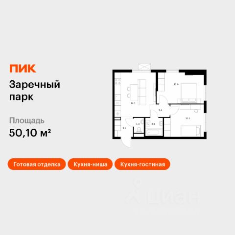 Продаётся 2-комн. квартира площадью 50,1 кв.м на 24 этаже 24 этажного дома (Корпус 6, Секция 2) проекта ПИК Заречный парк. Светлый просторный подъезд на уровне земли, функциональная планировка, большие окна, c отделкой. Жилой квартал "Заречный парк" расположен в районе Новое Девяткино Ленинградской области. В 7 минутах на автомобиле - станция метро "Девяткино", до КАД - 10 минут на машине. В 2026 году будет достроена шестиполосная трасса в обход Мурино, примыкающая к Пискарёвскому проспекту. Она станет дополнительным выездом на КАД для жителей "Заречного парка". Проект включает восемь домов высотой от 15 до 24 этажей, три многоуровневых паркинга, детский сад и школу. В зелёных дворах-парках будут оборудованы современные детские и спортивные площадки, обустроены места для отдыха. На первых этажах разместятся магазины, кафе и другие сервисы. Планировки продуманы так, чтобы каждый квадратный метр жилой площади можно было эффективно использовать. Все квартиры сдаются с готовой отделкой. Артикул 973318 (Застройщик ООО "СПЕЦИАЛИЗИРОВАННЫЙ ЗАСТРОЙЩИК ИНВЕСТАЛЬЯНС") [cn_sbp_1822128]