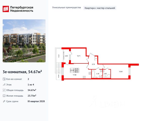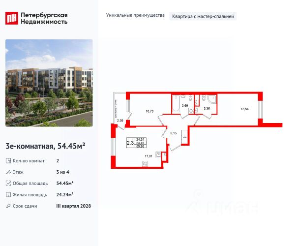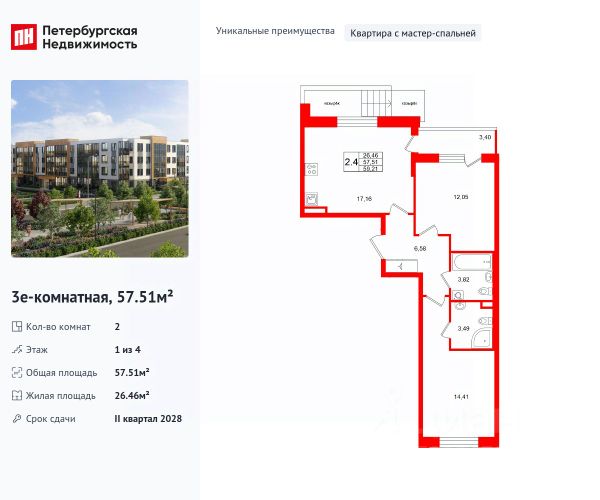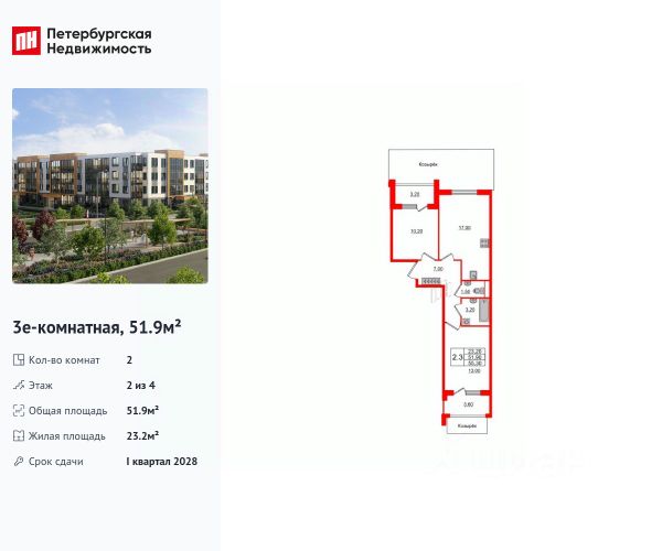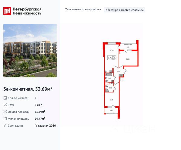 Продаётся уютная двухкомнатная квартира площадью 50.8 квадратных метров (обмер по ПИБ),в новом монолитном доме, расположенном в спокойном районе города Санкт-Перербурга. Здание построено в 2025 году и состоит всего из четырёх этажей, что создаёт атмосферу уединения и комфорта в композиции с дворцово - парковом ансамбле.