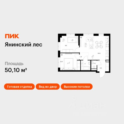 Продаётся 2-комн. квартира площадью 50,6 кв.м на 6 этаже 15 этажного дома (Корпус 1, Секция 1) проекта ПИК Янинский лес. Светлый просторный подъезд на уровне земли, функциональная планировка, большие окна, c отделкой. Жилой квартал "Янинский лес" возводится в районе Янино-1 Ленинградской области. Автобусная остановка находится в 3 минутах пешком. Проект расположен вплотную к восточной границе Санкт-Петербурга - в 4 минутах от КАД. До метро "Ладожская" - 23 минуты на общественном транспорте. До исторического центра города можно доехать за 25 минут на автомобиле. "Янинский лес" - масштабный проект из 32 жилых корпусов, где будет всё для комфортной жизни. Здесь предусмотрены надземные паркинги, откроются детские сады, школа и поликлиника. Кроме этого, появятся места, в которых можно проводить свободное время: ледовая арена и торговый центр площадью больше 3000 м². Жилой район строится по всем правилам ПИК-Стандарта: в зелёных дворах-парках появятся современные детские и спортивные площадки, пешеходный бульвар и другие места для отдыха. На первых этажах разместятся магазины, кафе и другие сервисы. Во дворах не будет автомобилей, а для гостей предусмотрены парковочные места. Проект окружают лесные массивы. В пешей доступности находится Ржевский лесопарк: летом там можно гулять и собирать грибы, а зимой кататься на лыжах. Также рядом расположен памятник природы Колтушские высоты - парк с обустроенными экотропами и веломаршрутом. А главное место притяжения местных жителей - озеро с обустроенным местом для пикников. Артикул 1048669 (Застройщик ООО "СПЕЦИАЛИЗИРОВАННЫЙ ЗАСТРОЙЩИК"ЭКСТРАГРАД") [cn_sbp_1850403]