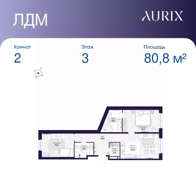 Продается 2-к квартира без отделки в ЖК "ЛДМ". Общая площадь квартиры — 140.8 кв. м, этаж 2 из 8. Тип дома — монолитный. Цена указана при 100% оплате.