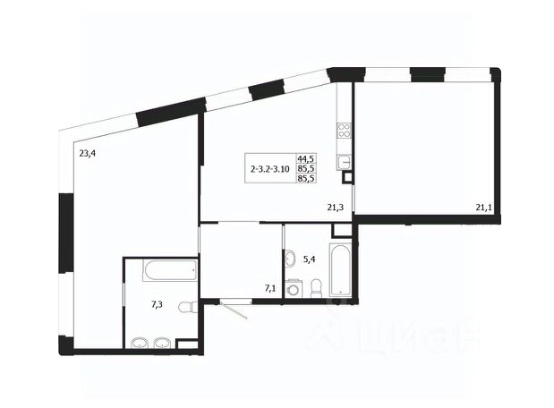 Продается 2-к квартира без отделки в ЖК "ЛДМ". Общая площадь квартиры — 83.4 кв. м, этаж 6 из 9. Тип дома — монолитный. Цена указана при 100% оплате.