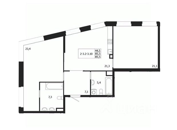Продается 2-к квартира без отделки в ЖК "ЛДМ". Общая площадь квартиры — 86.4 кв. м, этаж 2 из 9. Тип дома — монолитный. Цена указана при 100% оплате.