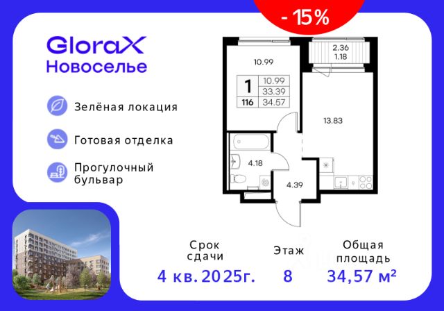 GloraX Новоселье — новый проект комфорт-класса на юго-западной границе Санкт-Петербурга и Ленинградской области. Близость к зеленым зонам Гореловского лесопарка и природного Шунгеровского заказника, а также пешеходный многофункциональный бульвар в центре квартала — идеальное место для тех, кто ценит природу и тишину, при этом не готов отказываться от благ современной инфраструктуры.