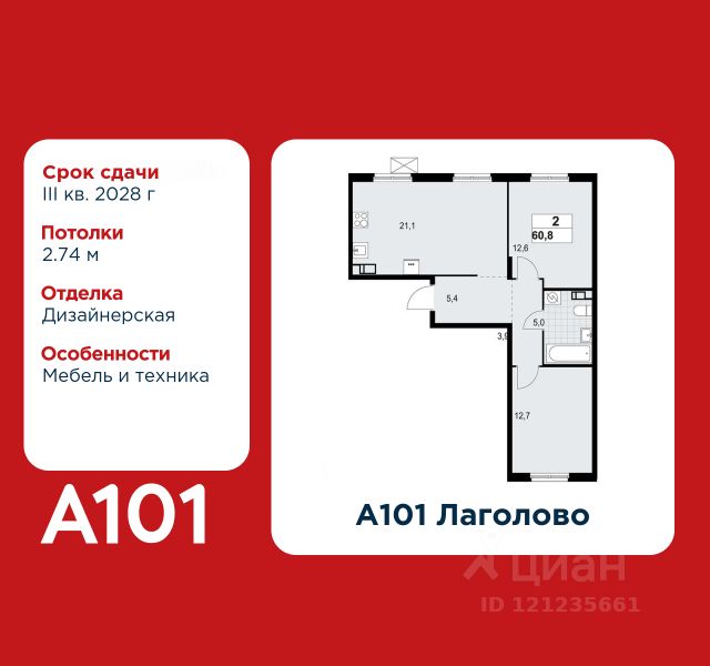 2-комнатная квартира площадью 46.76 в ЖК "А101 Лаголово" на 2 этаже. Квартира без отделки. Вид из окна во двор. В квартире 1 санузел. Высота потолков 2.74 м. Ключи в 2025 году. Предложения от застройщика на октябрь 2025: - Гибкая рассрочка 20 000 руб/мес. и первым взносом 10%. ОТДЕЛКА Квартира передается без отделки. Благодаря тому, что в данном типе отделки стены не возводятся, вы сможете создать удобную планировку и самостоятельно организовать зонирование комнат. ОСОБЕННОСТИ ПЛАНИРОВКИ ПАРАДНАЯ В каждой парадной предусмотрены места для хранения велосипедов и колясок, гостевой санузел, лапамойка (место для мытья домашних животных или колес велосипедов) и удобная зона ожидания для гостей. ДВОРЫ И ОКРУЖЕНИЕ Просторные дворы свободны от машин и закрыты от посторонних. Большую часть комплекса займут благоустроенные зелёные зоны, теневые сады и городские общественные пространства с развитой тротуарной сетью и велодорожками. Каждый дом оборудован системами видеонаблюдения и контроля доступа. "А101 Лаголово" - современный город у подножия знаменитых Дудерговских высот, в объятиях чистейших озёр и зелёных живописных массивов, наполненный всем необходимым для счастливой жизни. ИНФРАСТРУКТУРА. Мы занимаемся комплексным освоением территории. Наш приоритет - доступность всех сервисов для счастливой жизни. 1. Лаголово-город 15-ти минутной доступности. Вся необходимая инфраструктура: магазины, салоны красоты, образовательные учреждения, медицинские центры находятся в 15-ти минутах пешей прогулки от любой точки жилого комплекса. Это позволяет не тратить время на долгие перемещения. 2. Представьте идеальный город, где ребенок может спокойно играть, а пожилой человек наслаждаться заслуженным отдыхом. Жилая среда нашего комплекса может комфортно использоваться как 8-летним ребенком, так и 80-летним пожилым человеком. Дома, улицы, общественные пространства, тротуары спроектированы с заботой о людях разных возрастов. 3. Мы активно развиваем авторскую образовательную экосистему "Лёрнити". Она включает строительство 8 современных детских садов (2000 мест) и 3 школ (2945 учащихся). Мы учим родителей гармонично общаться с детьми, помогаем малышам подготовиться к школе, а подросткам - выбрать будущую профессию и развить таланты. Не хватает средств на покупку кладового помещения? Оформите ипотеку на квартиру и добавьте к ней часть стоимости кладовой. ЗАСТРОЙЩИК ГК "А101" - крупный инвестиционно-строительный холдинг, занимает 6-е место по объему строительства в России (по данным "Единого ресурса застройщиков" на 2023 год). НКР присвоило ГК "А101" кредитный рейтинг A+.ru, подтверждая его надежность и финансовую устойчивость для завершения строительства ЖК. Продается 2-комнатная квартира в новостройке в сельском поселении Лаголовское Ломоносовского района.