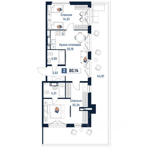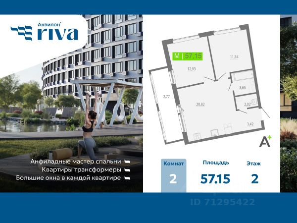 Продается двухкомнатная квартира с отделкой в ЖК "Аквилон RIVA" на 9 этаже. Общая площадь: 60.28 кв.м., площадь просторной кухни-столовой: 18.28 кв.м. Высота потолков 2.73 м. Дом монолитный, трехподъездный, переменной этажности, от 16 до 20 этажей. Квартира находится в 1-й секции высотой 20 этажей в корпусе 1. На этаже 15 квартир. В подъезде 2 пассажирских и 1 грузовой лифт. Окончание строительства - 4 квартал 2027 года. Оформление сделки по договору долевого участия. В шаговой доступности от дома находится станция метро (расстояние по прямой) "Девяткино" (1.9 км). ЖК "Аквилон RIVA" - жилой комплекс комфорт класса у метро Девяткино от Группы Аквилон В самом сердце двора раскинулся собственный водоём — не просто украшение, а часть вашей повседневной жизни. Летом — это благоустроенная набережная для прогулок, отдыха в тени деревьев и тихих вечеров у воды. А зимой водоём превращается в залитый каток — место, где звучит смех, скользят коньки и рождаются семейные традиции. Здесь каждое время года раскрывает свой характер. Зона уединения: Места для занятия йогой и медитаций Мульти скворечники Качели с подсветкой для уютных бесед Высокие скамейки на набережной для отдыха и чтения на свежем воздухе Активная зона: Развивающие детские площадки для разных возрастов Спортивные площадки с зоной Ворк-аут, Столы для настольного тенниса Площадка для пляжного волейбола Преимущества Увеличенные окна с заполнением аргоном Корзины под кондиционеры Сити-боксы вместо балконов Безбарьерная среда Бесшумные скоростные лифты Контроль доступа на территорию и видеонаблюдение Отделка квартир Чистовая отделка в трех цветовых решениях: Sand, Terra и Graphite Дозаказ для любой квартиры Стандарты Группы Аквилон для вашей комфортной жизни Thermo-S экономия на коммунальных платежах за счет дополнительно утепленных стен, кровли и цоколя. Энергоэффективные окна с селективным покрытием и аргоновым заполнением Soundstop - дополнительная шумоизоляция внутренних перегородок и межэтажных перекрытий, шумозащитные окна, малошумные лифты Light-in - в квартирах устанавливаются широкоформатные окна, увеличены на 30%. Высота подоконников на уровне 60 см от пола. Vent-in - в каждой комнате есть клапаны индивидуальной вентиляции, которые обеспечивают приток свежего воздуха с улицы. inHOME умный дом в каждой квартире Интеллектуальная цифровая система, которая позволит дистанционно решать бытовые вопросы, управлять квартирой и экономить на оплате коммунальных услуг. В состав inHOME входят: IP-домофон, Face key, "умные" счетчики, датчики протечки, дистанционное отключение розеток, и т.д. Паркинг Отдельно стоящий 3-х уровневый паркинг Электрозарядки на территории ЖК Локация м. Девяткино 5 минут Центр города - 20 минут КАД 5 минут. #2M36gF Продается 2-комнатная квартира в новостройке в Мурино.