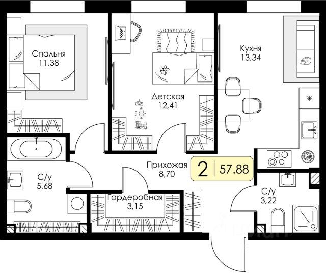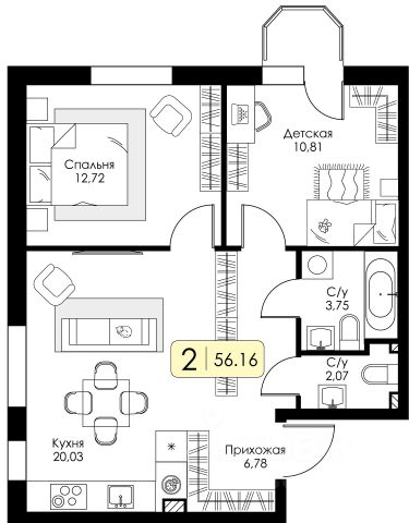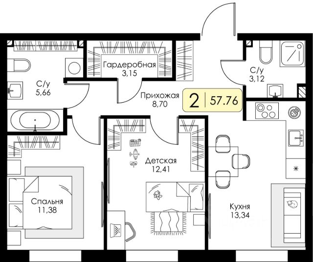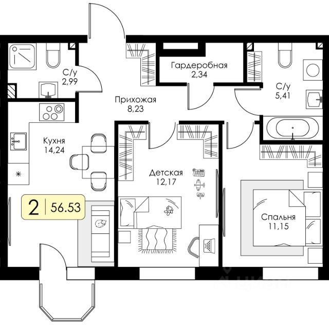 Продаётся 2-комнатная квартира в строящемся доме (Этап 1. подэтап 1.1), срок сдачи: IV-кв. 2027, общей площадью 56.73 кв.м., на 2 этаже. Новый жилой комплекс "Всевгород" от застройщика "Консоль" расположен по адресу: Ленинградская область, Всеволожский район, посёлок Романовка