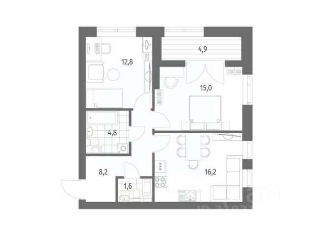2-комн. квартира с отделкой в ЖК "Аквилон RIVA" на 13 этаже. Общая площадь: 58.42 кв.м., площадь просторной кухни-столовой: 18.82 кв.м. Высота потолков 2.73 м.