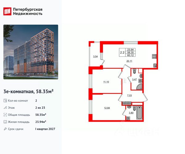Продается просторная 2-комнатная квартира от застройщика в жилом комплексе "Город звезд" в новом городе на правом берегу Невы. До метро можно добраться на транспорте всего за 13 минут. Удобная, классическая, функциональная европланировка, большая кухня-гостиная 17.5 м², вместительная прихожая 6.96 м². Общая площадь квартиры - 60.82 м², жилая 28.05 м², высота потолка 2.75 м. Квартира продается с отделкой "NORD LINE SILVER". Что особенного в ЖК "Город звезд"? • Инновационный Лицей Setl с оригинальной архитектурной концепцией и уникальной образовательной средой • Невский лесопарк под окнами - всегда свежий воздух и полноценный отдых на природе • Четыре тематические площади отдыха с разнообразным благоустройством • Аллея Звёзд - променад протяженностью 5 км с ландшафтным озеленением, зонами отдыха и велодорожкой • Выход на набережную реки Утки, где можно порыбачить или взять напрокат лодку • Единая входная группа с ресепшен и подземный паркинг