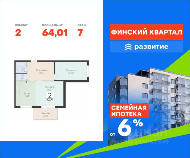 Продается квартира площадью 56.05 кв. м с отделкой white box. Квартира расположена на 8 этаже 8 этажного дома, в жилом комплексе комфорт-класса "Финский Квартал". "Финский квартал" - это уникальный проект комфорт-класса для тех, кто хотел бы жить на природе, но при этом находиться вблизи Северной столицы. Расположенный в окружении одного из самых крупных парков Ленобласти - Лахтинского, проект предлагает своим жителям доступную инфраструктуру, комплексное благоустройство территории, 6 секций переменной этажности с современной архитектурой, которая гармонично дополнит район и будет радовать проживающих еще много лет. Найдите свою идеальную квартиру в ЖК "Финский Квартал"! Расположение Пешком: - 5 мин. до детского сада и супермаркета; - 8 мин. до остановки "Зеленая улица"; - 10 мин. до лесопарковой зоны. На автомобиле: - 3 мин. до Приозерского шоссе; - 10 мин. до Выборгского шоссе; - 12 мин. до КАД; - 30 мин. до ст. метро "Проспект Просвещения". Благоустройство - большой яркий двор с ландшафтным дизайном; - живая изгородь, кустарники и хвойники; - умное зонирование тихих и активных площадок; - сквер для прогулок и отдыха; - изумрудные лужайки для пикников; - дорожки для пешеходов и велосипедистов; - большие игровые площадки; - мягкое покрытие для безопасности детей; - тренажеры, турники и веревочные комплексы; - пространство только для пешеходов - без машин; - наземная парковка за пределами двора; - специальные площадки для выгула питомцев; - светлые дизайнерские холлы; - светопрозрачное остекление и большие окна; - декоративная подсветка парадных; - колясочные помещения для комфорта родителей; - места для хранения велосипедов и самокатов. Окружение - свежий воздух: парк усадьбы "Осиновая Роща", Лахтинский парк, лесопарк "Курортный", Левашовский заказник, Ново-Кавголовский лесопарк; - водные объекты: Сестрорецкий Разлив, пляжи у Тохколодского и Большого озер, залив Сярюнлахти; - инфраструктура: 2 детских сада, школа, кафе, продуктовый супермаркет, больница; - для крупных покупок: ТРЦ "Китай-Город", "Мега-Парнас"", "Гранд Каньон"; - активный отдых: горнолыжные комплексы "Охта-Парк" и "Токсово", конный клуб "Осиновая Роща", ФОК "Норус".