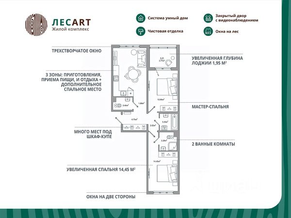 Продаётся 2-комнатная квартира 004, общей площадью 64.92 кв.м., на 1. Дом комфорт-класса, 12 этажей, в окружении леса и малоэтажной застройки. Проект с умным домом. Передача квартир в апреле 2026г. РАСПОЛОЖЕНИЕ И БЛАГОУСТРОЙСТВО Расположение ЖК "ЛесART" порадует любителей чистого воздуха — рядом находятся лесопитомник и Шунгеровский заказник. Особенность комплекса это его ART дворы, которые оформлены по мотивам произведений Василия Кандинского, Пита Мондриана и Пабло Пикассо. Дворы закрыты от машин, что обеспечивает безопасность детей и взрослых. Для семей с детьми особенно удобно наличие детского сада и школы прямо во дворе комплекса. На первом этаже расположены магазины, маркетплейсы, кофейни и всё что необходимо для повседневной жизни. Холлы - это продуманные пространства с колясочными, сквозными проходами и приятной музыкой в лифтах. СИСТЕМА УМНОГО ДОМА В КАЖДОЙ КВАРТИРЕ - Комфорт. Управление освещением, мультимедиа и климат-контролем. - Безопасность. Видеонаблюдение и мониторинг систем безопасности. - Экономия. Контроль систем и оптимизация энергопотребления. - Удобство. Управление с помощью мобильного телефона. ГК "ЕДИНО" Входит в тройку компаний-лидеров региона по потребительским качествам жилых комплексов, объемам ввода жилья и объемам текущего строительства. В цифрах: - 23 года на рынке - Более 50 построенных домов - 60 000+ счастливых обладателей квартир ПРЕИМУЩЕСТВА ПОКУПКИ В ЖК "ЛЕСART": - Сниженная ставка по семейной ипотеке от 5,5%; - Рассрочка без переплаты; - Обмен старой квартиры на новую без комиссии; - Возможность использовать материнский капитал; ЗАПИСЫВАЙТЕ НА ПРОСМОТР! Мы ждем Вас в нашем уютном шоуруме. Вы увидите отделку, дизайнерские решения и познакомитесь со сценариями Умного дома! Такси до офиса продаж и обратно БЕСПЛАТНО!