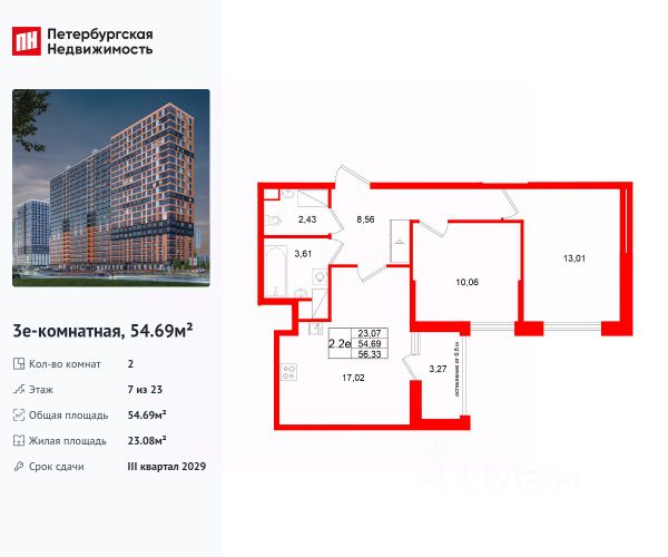 Продается уютная 2-комнатная квартира от застройщика в жилом комплексе "Город звезд" в новом городе на правом берегу Невы. До метро можно добраться на транспорте всего за 13 минут. Удобная, классическая, функциональная европланировка, большая кухня-гостиная 15.07 м², вместительная прихожая 6.29 м². Общая площадь квартиры - 49.13 м², жилая 23.06 м², высота потолка 2.77 м. Квартира продается с отделкой "NORD LINE SILVER". Что особенного в ЖК "Город звезд"? • Инновационный Лицей Setl с оригинальной архитектурной концепцией и уникальной образовательной средой • Невский лесопарк под окнами - всегда свежий воздух и полноценный отдых на природе • Четыре тематические площади отдыха с разнообразным благоустройством • Аллея Звёзд - променад протяженностью 5 км с ландшафтным озеленением, зонами отдыха и велодорожкой • Выход на набережную реки Утки, где можно порыбачить или взять напрокат лодку • Единая входная группа с ресепшен и подземный паркинг