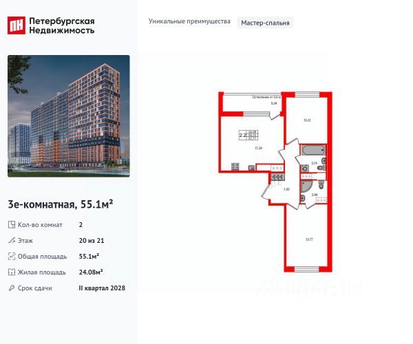 Продается уютная 2-комнатная квартира от застройщика в жилом комплексе "Город звезд" в новом городе на правом берегу Невы. До метро можно добраться на транспорте всего за 13 минут. Удобная, классическая, функциональная европланировка, большая кухня-гостиная 15.44 м², вместительная прихожая 7.21 м². Общая площадь квартиры - 50.72 м², жилая 22.4 м², высота потолка 2.77 м. Квартира продается с отделкой "NORD LINE WHITE". Что особенного в ЖК "Город звезд"? • Инновационный Лицей Setl с оригинальной архитектурной концепцией и уникальной образовательной средой • Невский лесопарк под окнами - всегда свежий воздух и полноценный отдых на природе • Четыре тематические площади отдыха с разнообразным благоустройством • Аллея Звёзд - променад протяженностью 5 км с ландшафтным озеленением, зонами отдыха и велодорожкой • Выход на набережную реки Утки, где можно порыбачить или взять напрокат лодку • Единая входная группа с ресепшен и подземный паркинг
