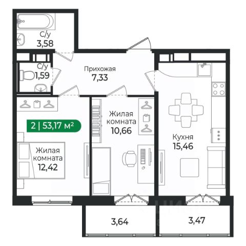 • ✓ В базе Циан 649 2-комнатных квартир с отделкой от застройщика рядом с метро Парнас