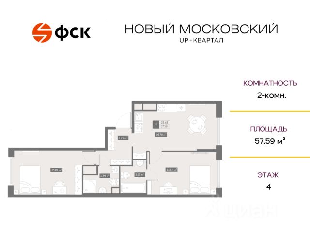 • ✓ В базе Циан 288 2-комнатных квартир с отделкой от застройщика рядом с метро Шушары