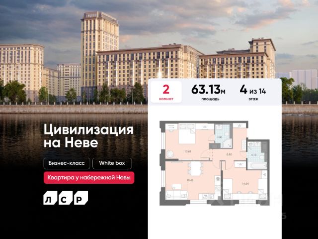 Цена действует при 100% оплате и на определенные ипотечные программы. Подробности — в отделе продаж по телефону. Продаётся 2-комнатная квартира в ЖК "Цивилизация на Неве" на 14 этаже. Общая площадь составляет 42.66 кв. м. Квартира с white box отделкой. Жилой комплекс "Цивилизация на Неве" располагается по адресу Санкт-Петербург, Невский. "Цивилизация на Неве" - видовые дома бизнес-класса, расположенные вдоль набережной Невы, всего в 7 км от исторического центра. Жилой комплекс идеально выражает особый дух, свойственный знаменитым просторным кварталам постройки сталинской эпохи в Москве и на Московском проспекте в Петербурге. Расположение: • 15 мин на авто до Невского проспекта; • 15 мин на авто до Московского вокзала; • 5 мин на авто до станции метро "Улица Дыбенко"; • 14 мин (7 км) до КАД. Уникальный дизайн входных зон, закрытая территория, видеонаблюдение и охрана, подземный паркинг с лифтом и другие особенности проекта отвечают заявленному классу. В каждом дворе предусмотрено озеленение по индивидуальному ландшафтному проекту с благородными растениями и кустарниками. Преимущества: • Закрытая территория с видеонаблюдением; • Подземный паркинг с лифтом; • Детская площадка на приватной безопасной территории; • Несколько детских садов и школ; • Инфраструктура шаговой доступности на первых этажах корпусов. Успейте приобрести квартиру на выгодных условиях! Чтобы узнать подробности, обращайтесь за консультацией по телефону. 2-комнатная квартира в новостройке с отделкой в муниципальном округе № 54 в Санкт-Петербурге.