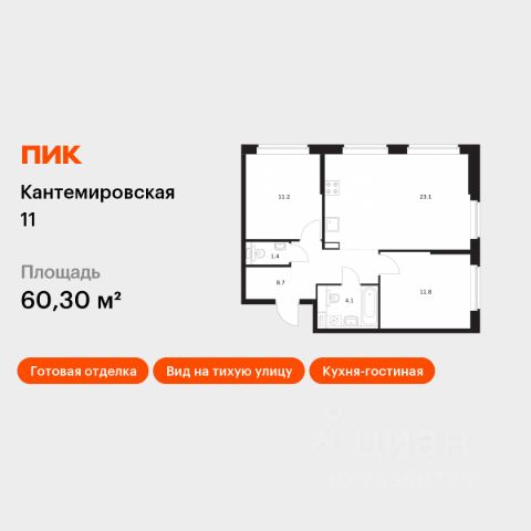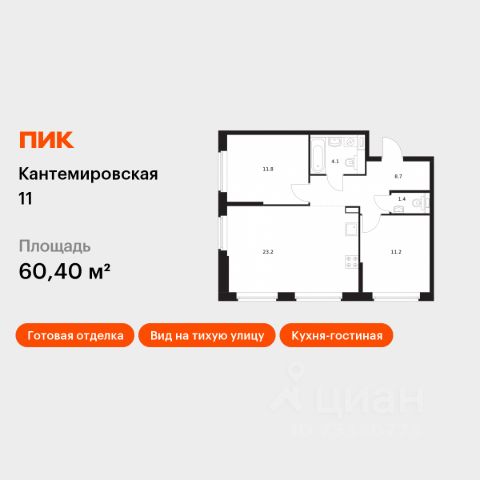 Продаётся 2-комн. квартира площадью 63,4 кв.м на 2 этаже 13 этажного дома (Корпус 5, Секция 1) проекта ПИК Кантемировская 11. Светлый просторный подъезд на уровне земли, функциональная планировка, большие окна, c отделкой. Жилой район "Кантемировская 11" расположен в Выборгском районе Санкт-Петербурга, в 5 минутах пешком от станции метро "Лесная". До Кантемировского моста и живописной Выборгской набережной всего 10 минут пешком. Проект включает в себя семь жилых корпусов средней этажности - от 9 до 13 этажей. Все квартиры - сразу с готовой отделкой: вам не придётся тратить время на ремонт. В "Кантемировской 11" есть детский сад и начальная школа, которые разместились в историческом здании начала XX века. Мы бережно сохранили фасад в кирпичном стиле с элементами модерна, а само здание переделали - например, внутри появились два бассейна. Во всех помещениях много света благодаря огромным окнам и зенитным фонарям на крыше. Территория проекта будет благоустроена в соответствии с высокими стандартами ПИК: между домами появятся дворы-парки без машин, с зелёными газонами и взрослыми деревьями, детскими площадками и зонами для отдыха. Первые этажи займут магазины, кофейни, аптеки, салоны красоты. На подземных этажах разместятся индивидуальные кладовые для хранения сезонных и габаритных вещей, а для автомобилистов за пределами дворов появятся наземные паркинги. Рядом с "Кантемировской 11" сразу несколько крупных зелёных зон для отдыха на свежем воздухе. Например, Каменный остров и Ботанический сад Петра Великого, один из старейших в России. Недалеко уютный сад Александра Матросова. Артикул 890161 (Застройщик ООО "СПЕЦИАЛИЗИРОВАННЫЙ ЗАСТРОЙЩИК КАНТЕМИРОВСКАЯ") [cn_sbp_1776452] Продается 2-комнатная квартира в новостройке с отделкой рядом с метро Лесная.