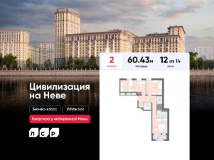 Цена действует при 100% оплате и на определенные ипотечные программы. Подробности — в отделе продаж по телефону. Продаётся 2-комнатная квартира в ЖК "Цивилизация на Неве" на 3 этаже. Общая площадь составляет 53.23 кв. м. Квартира с white box отделкой. Жилой комплекс "Цивилизация на Неве" располагается по адресу Санкт-Петербург, Невский. "Цивилизация на Неве" - видовые дома бизнес-класса, расположенные вдоль набережной Невы, всего в 7 км от исторического центра. Жилой комплекс идеально выражает особый дух, свойственный знаменитым просторным кварталам постройки сталинской эпохи в Москве и на Московском проспекте в Петербурге. Расположение: • 15 мин на авто до Невского проспекта; • 15 мин на авто до Московского вокзала; • 5 мин на авто до станции метро "Улица Дыбенко"; • 14 мин (7 км) до КАД. Уникальный дизайн входных зон, закрытая территория, видеонаблюдение и охрана, подземный паркинг с лифтом и другие особенности проекта отвечают заявленному классу. В каждом дворе предусмотрено озеленение по индивидуальному ландшафтному проекту с благородными растениями и кустарниками. Преимущества: • Закрытая территория с видеонаблюдением; • Подземный паркинг с лифтом; • Детская площадка на приватной безопасной территории; • Несколько детских садов и школ; • Инфраструктура шаговой доступности на первых этажах корпусов. Успейте приобрести квартиру на выгодных условиях! Чтобы узнать подробности, обращайтесь за консультацией по телефону. Продается 2-комнатная квартира в новостройке с отделкой в районе Невский в Санкт-Петербурге.