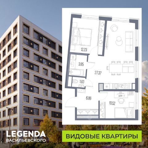 Двухкомнатная квартира с предчистовой отделкой в ЖК "LEGENDA Васильевского" на 2 этаже. Общая площадь: 59.64 кв.м., жилая: 22.64 кв.м., площадь просторной кухни-столовой: 21.31 кв.м. Комнаты изолированные, все окна выходят на одну сторону. В квартире один балкон, один раздельный санузел. Высота потолков 2.72 м. "LEGENDA Васильевского" жилой квартал в минутной доступности от Финского залива, главного креативного хаба Санкт-Петербурга Севкабель Порта и других точек притяжения. Современные инженерные и технические решения, повышающие качество жизни TechnoBox включают в себя: стационарный и удаленный контроль дома, систему вентиляции Air Design - здоровое дыхание без лишнего шума, мультисервисную сеть, объединяющую коммуникационные системы, удаленное управление электроприборами, контроль отопления в каждом помещении, поддерживающий оптимальный температурный баланс во время "холодного" периода", датчики протечки, датчик открытия входной двери. Мультисервисная сеть (МСС) объединяет ключевые слаботочные системы дома, задавая им единый высокий стандарт работы, обеспечивая надёжность их функционирования и управления. Квартира готова к декорированию. Застройщиком сделана шумоизоляция; стены подготовлены для отделки; проведена электрика с учетом рекомендаций по расстановке мебели и бытовой техники; выровнен пол. В каждой квартире установлена взломостойкая входная дверь, окна со специальным термоизолированным алюминиевым профилем. Двор жилого комплекса "LEGENDA Васильевского" закрыт. Проект состоит из шести разноформатных корпусов с ритмичными фасадами в духе пост-конструктивизма. Геометрия жилого комплекса состоит из четко простроенных осей, чередующих открытые пространства и объемы корпусов, каждый из которых обладает своим визуальным кодом индивидуальным рисунком фасада и цветовой палитрой. Корпуса образуют периметр с общественными пространствами: площадью с кафе, магазинами и пешеходным променадом с детскими игровыми хабами, местами для спокойного отдыха и workout-зоной. На территории комплекса предусмотрены теплый подземный паркинг и два наземных 4-х этажных паркинга. Продам 2-комнатную квартиру в новостройке с отделкой в округе Гавань в Санкт-Петербурге.