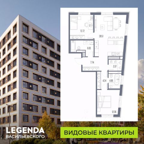 Двухкомнатная квартира от застройщика с предчистовой отделкой в ЖК "LEGENDA Васильевского" на 2 этаже. Общая площадь: 60.64 кв.м., жилая: 22.59 кв.м., площадь просторной кухни-столовой: 18.14 кв.м. Комнаты изолированные, все окна выходят на одну сторону. В квартире два совмещенных санузла. Высота потолков 2.72 м. "LEGENDA Васильевского" жилой квартал в минутной доступности от Финского залива, главного креативного хаба Санкт-Петербурга Севкабель Порта и других точек притяжения. Современные инженерные и технические решения, повышающие качество жизни TechnoBox включают в себя: стационарный и удаленный контроль дома, систему вентиляции Air Design - здоровое дыхание без лишнего шума, мультисервисную сеть, объединяющую коммуникационные системы, удаленное управление электроприборами, контроль отопления в каждом помещении, поддерживающий оптимальный температурный баланс во время "холодного" периода", датчики протечки, датчик открытия входной двери. Мультисервисная сеть (МСС) объединяет ключевые слаботочные системы дома, задавая им единый высокий стандарт работы, обеспечивая надёжность их функционирования и управления. Квартира готова к декорированию. Застройщиком сделана шумоизоляция; стены подготовлены для отделки; проведена электрика с учетом рекомендаций по расстановке мебели и бытовой техники; выровнен пол. В каждой квартире установлена взломостойкая входная дверь, окна со специальным термоизолированным алюминиевым профилем. Двор жилого комплекса "LEGENDA Васильевского" закрыт. Проект состоит из шести разноформатных корпусов с ритмичными фасадами в духе пост-конструктивизма. Геометрия жилого комплекса состоит из четко простроенных осей, чередующих открытые пространства и объемы корпусов, каждый из которых обладает своим визуальным кодом индивидуальным рисунком фасада и цветовой палитрой. Корпуса образуют периметр с общественными пространствами: площадью с кафе, магазинами и пешеходным променадом с детскими игровыми хабами, местами для спокойного отдыха и workout-зоной. На территории комплекса предусмотрены теплый подземный паркинг и два наземных 4-х этажных паркинга. Продам 2-комнатную квартиру в новостройке с отделкой в округе Гавань в Санкт-Петербурге.
