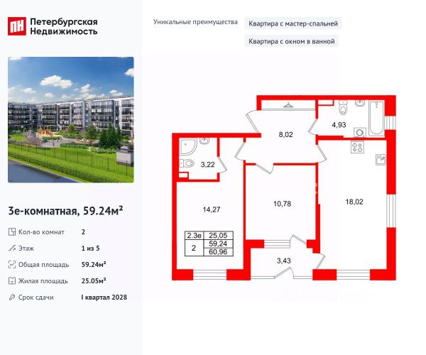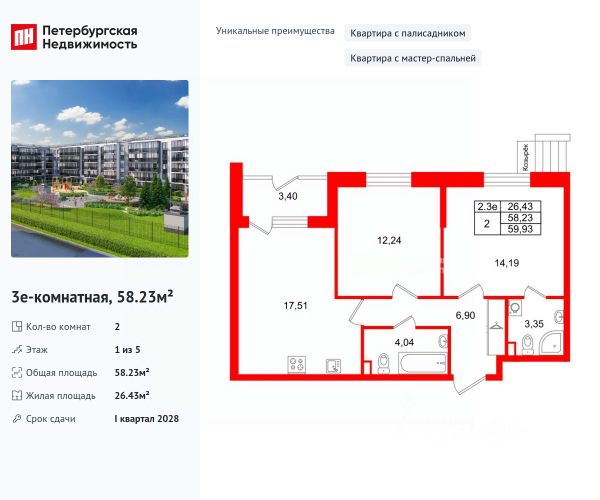 Продается уютная 2-комнатная квартира от застройщика в жилом комплексе "Парадный ансамбль" в престижном Московском районе. До метро можно добраться на транспорте всего за 20 минут. Мастер-спальня с собственной ванной комнатой. Самое приватное пространство в вашей квартире. Уникальная, функциональная европланировка, большая кухня-гостиная 14.61 м², вместительная прихожая 3.61 м². Общая площадь квартиры - 50.66 м², жилая 23.01 м², высота потолка 2.77 м. Квартира продается с отделкой "NORD LINE WHITE". Что особенного в ЖК "Парадный ансамбль"? • Инновационный Лицей Setl с оригинальной архитектурной концепцией и уникальной образовательной средой • Масштабное малоэтажное строительство в престижном Московском районе • Рекреационные зоны: парадный парк в центре квартала, ручей с собственной набережной, центральная площадь, ресторанный комплекс и пешеходный бульвар • Фасады из керамогранита и кирпича с яркими и акцентными входными группами • Две самые большие площадки Setl Kids и Setl Sport • Уникальные квартиры.High Flat на последних этажах, палисадники у квартир на первом этаже, семейные секции, квартиры с саунами и окном в ванной Продается 2-комнатная квартира в новостройке с отделкой в округе Пулковский меридиан в Санкт-Петербурге.