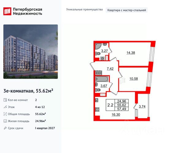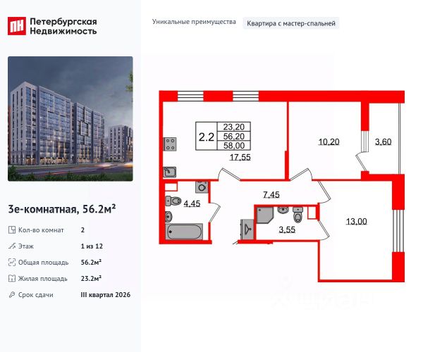 SAAN - новый мультиформатный проект доходной недвижимости в двух минутах от метро Пионерская. В 10 шагах от входа начинается Удельный парк. В проекте представлены различные варианты: от компактных студий до просторных резиденций с панорамными террасами, а также офисы и коммерческая недвижимость. Резиденты получают доступ к клубной инфраструктуре проекта: Городской термальный курорт Зона коворкинга Общественная гостиная с террасой Камерный кинотеатр Детская игровая зона Конференц-залы Бьюти-пространство Спортзал Комната для подкастов Общественное пространство на кровле с видом на город Отличительная особенность проекта - собственный SPA-комплекс, включающий в себя три бассейна, парные с видами на Удельный парк и зону релакса. Под авторством ITALY&CO выйдет проект модного гастро-пространства, флагманом которого станет двухуровневый ресторан с террасой, кафе для завтраков и лаунж-бар, обслуживающий зону лобби. Украшением прилегающей территории станет благоустроенное общественное пространство площадью 3500 кв.м., сочетающее традиции скандинавских садов и элементы азиатского дизайна. Эксплуатацией комплекса займется собственная управляющая компания. В юнитах можно проживать самостоятельно или сдавать их в аренду через управляющую компанию и получать пассивный доход. В цену юнитов включена дизайнерская чистовая отделка. Доступны программы гарантированной доходности для инвесторов. О застройщике Hansa Group — современный девелопер с 25-летним опытом. Компания развивает разные направления строительства: жилая и коммерческая недвижимость, производственные здания и спортивные сооружения. За 25-летний опыт работы реализовала более 50 собственных и партнерских проектов по всей России. Hansa Group интегрируем актуальные мировые тренды в сегмент доходной недвижимости и задает новый ориентир для инвестиций и жизни. 2-комнатная квартира в новостройке с отделкой в районе Приморский в Санкт-Петербурге.