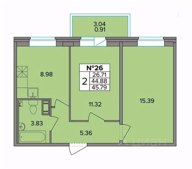 Продаётся 2-комнатная квартира в сданном доме (Ленсоветовский, 19к2 (Корпус 1)), срок сдачи: II-кв. 2025, общей площадью 45.79 кв.м., на 11 этаже. Жилой многоквартирный дом от застройщика "СЗ Смарт".