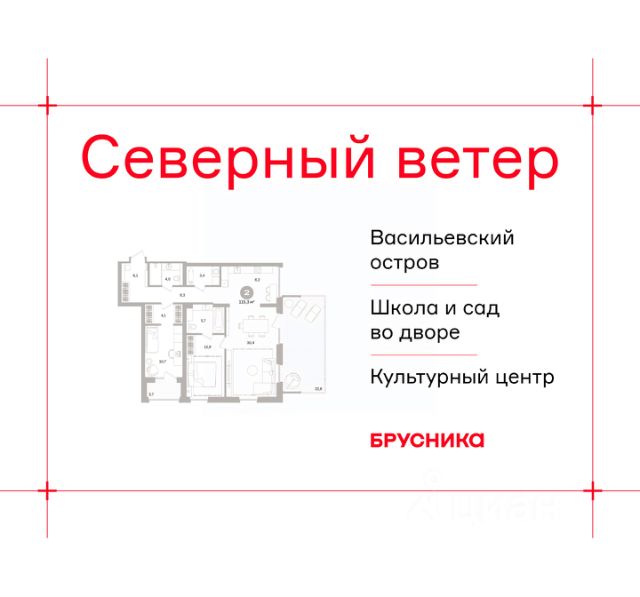 Просторная 2-комн. квартира с предчистовой отделкой в ЖК "Северный ветер" на 2 этаже. Общая площадь: 121.11 кв.м., жилая: 27.6 кв.м., площадь просторной кухни-столовой: 40.8 кв.м. Угловая квартира, очень светлая, естественная вентиляция при открытии окон. В квартире один балкон и одна лоджия, два совмещенных санузла. Наличие в квартире террасы открывает возможность для создания зон отдыха в кругу семьи и друзей. Высота потолков 3.1 м.