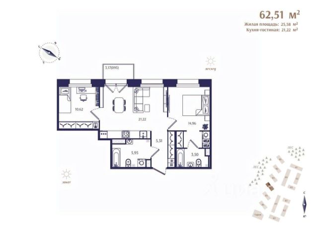 Просторная двухкомнатная квартира - Family- формат, в которой продумана каждая деталь для проживания семьи. Особенности лота: вид на лес панорамные окна потолки 3 м большая кухня-гостиная гардеробная два санузла отделка White Box. ИНДИВИДУАЛЬНЫЕ УСЛОВИЯ РАССРОЧКИ! ВЫГОДНАЯ ЦЕНА ПРИ 100% ОПЛАТЕ! Загородная жизнь с городским комфортом! Малоэтажный ЖК и небольшое количество квартир на этажах создают атмосферу приватной резиденции. В ЖК бизнес-класса Ranta Residence нет студий: все квартиры имеют площадь от 36 м² до 99 м². Прописка Санкт-Петербург. БЛАГОУСТРОЙСТВО Закрытая охраняемая территория, современный ландшафтный дизайн от студии L.Buro, натуральные материалы в обустройстве, а также резидентам ЖК будут доступны: теннисный корт на крыше паркинга; коворкинг под открытым небом; финский павильон с живым очагом и шезлонгами; павильон с барбекю; гамаки, скамейки и лежаки; спортивные и детские площадки; три прогулочные аллеи, амфитеатр; водный арт-объект; сад скульптур и пряных трав. ИНФРАСТРУКТУРА Мы создаём атмосферу закрытого клуба и интересного комьюнити, только для резидентов ЖК будут доступны: Бэби-клуб с детской комнатой и заботливой няней; Спортивный зал с тренажерами; Зал для йоги и стретчинга; Коворкинг; Кофейня; Собственный детский сад и начальная школа. В пешей доступности расположены: ТЦ Курортный Продуктовые магазины Перекресток и Пятерочка Аптека Кафе быстрого питания 4 школы и 3 детских сада Взрослая и детская поликлиники Рестораны и парки. ЛОКАЦИЯ ЖК бизнес-класса Ranta Residence расположен в экологически чистом Курортном районе Санкт-Петербурга, занимает участок площадью 5,4 Га по адресу: г. Санкт-Петербург, г. Зеленогорск, ул. Кривоносовская 57Д. ЖК Ranta Residence граничит с лесным массивом, также поблизости находятся: Государственный природный заказник "Озеро Щучье"; Золотой пляж; Комаровский берег; Зеленогорский парк культуры и отдыха; Горнолыжный курорт Пухтолова гора всего в 15 минутах на автомобиле . Съезда на ЗСД находится в 18 км, до ближайшей станции метро Беговая путь на автомобиле займет в среднем 50 минут, а до центра Санкт-Петербурга путь составит в среднем 60 минут. От ЖК Ranta Residence до центра Санкт-Петербурга около 60 км (по Зеленогорскому или Приморскому шоссе — они идут параллельно). До "Лахта-центра" 45 км и 45 минут в пути. В 15 минутах от ЖК на Вокзале Зеленогорск можно сесть на Ласточку, которая за 55 минут доезжает до Финляндского вокзала, там же есть автобусная остановка, от которой можно доехать к станциям метро Беговая и Черная речка" - этот путь займёт около 1,5 часа. Хотите узнать подробности? Звоните в Отдел продаж, наши специалисты ответят на все интересующие вас вопросы! #Зеленогорск, #Курортный район, просторная планировка, #малоэтажный, закрытый охраняемый двор, #бизнес-класс, панорамные окна, потолки 3 метра.
