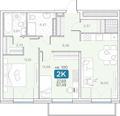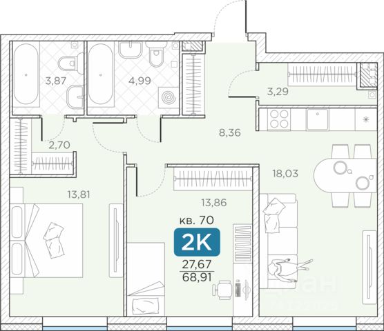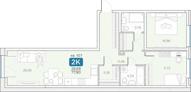 Продается двухкомнатная квартира в ЖК "BAKUNINA 33" на 5 этаже. Квартира без отделки, полностью готова к ремонту. Общая площадь: 72.3 кв.м., жилая: 35.09 кв.м., площадь просторной кухни-столовой: 15.36 кв.м. Квартира - распашонка, без проходных комнат, окна выходят на paзные стороны дома. В квартире одна лоджия, один совмещенный и один раздельный санузел. Высота потолков 3.0 м.