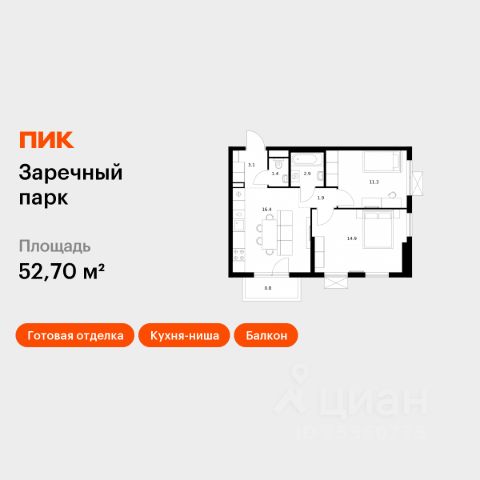 Продаётся 2-комн. квартира площадью 50,7 кв.м на 3 этаже 16 этажного дома (Корпус 4, Секция 2) проекта ПИК Заречный парк. Светлый просторный подъезд на уровне земли, функциональная планировка, большие окна, без отделки. Жилой квартал "Заречный парк" расположен в районе Новое Девяткино Ленинградской области. В 7 минутах на автомобиле - станция метро "Девяткино", до КАД - 10 минут на машине. В 2026 году будет достроена шестиполосная трасса в обход Мурино, примыкающая к Пискарёвскому проспекту. Она станет дополнительным выездом на КАД для жителей "Заречного парка". Проект включает восемь домов высотой от 15 до 24 этажей, три многоуровневых паркинга, детский сад и школу. В зелёных дворах-парках будут оборудованы современные детские и спортивные площадки, обустроены места для отдыха. На первых этажах разместятся магазины, кафе и другие сервисы. Планировки продуманы так, чтобы каждый квадратный метр жилой площади можно было эффективно использовать. Все квартиры сдаются с готовой отделкой. Артикул 1060226 (Застройщик ООО "СПЕЦИАЛИЗИРОВАННЫЙ ЗАСТРОЙЩИК ИНВЕСТАЛЬЯНС") [cn_sbp_1848846]