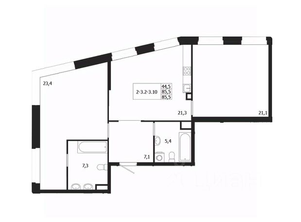 Продается квартира 308, по адресу г. Санкт-Петербург, улица Профессора Попова, дом 47, литера А, корпус Корпус 5 в ЛДМ на 9 этаже, с площадью 69.4 м2.
