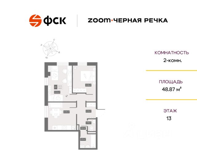 Цена со специальной скидкой в прямой продаже от застройщика — только в этом месяце. 2-к апартамент в комплексе класса бизнес-лайт Zoom Чёрная Речка на 13-м этаже. Общая площадь 48,87. Без отделки. Zoom Черная речка это новый комплекс класса бизнес-лайт от крупного федерального застройщика ФСК. Zoom Черная речка расположен в престижном Приморском районе непосредственно на берегу Черной речки. В нем есть все необходимое для жителей разных возрастов и интересов от отапливаемого подземного паркинга и круглосуточного видеонаблюдения до коворкинга на открытом воздухе, интерактивных детских площадок и зон отдыха. Собственная набережная будет оборудована деревянными настилами и скамейками, благодаря чему вы сможете с комфортом проводить время у воды. Лобби на первом этаже современное и стильное пространство, где вы можете выпить кофе, подождать такси или поработать с ноутбуком. В отдельных лотах предусмотрено все для оборудования камина. Новый уровень уюта в вашем доме. Приобретение возможно в том числе с помощью ипотеки и рассрочки.