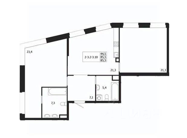 Продается 2-к квартира без отделки в ЖК "ЛДМ". Общая площадь квартиры — 99.8 кв. м, этаж 2 из 9. Тип дома — монолитный. Цена указана при 100% оплате.