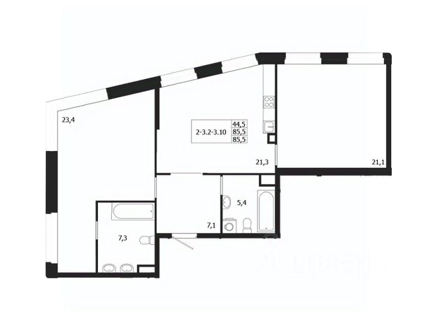 Продается 2-к квартира без отделки в ЖК "ЛДМ". Общая площадь квартиры — 84.7 кв. м, этаж 2 из 9. Тип дома — монолитный. Цена указана при 100% оплате.