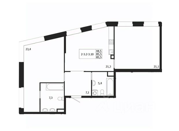 Продается 2-к квартира без отделки в ЖК "ЛДМ". Общая площадь квартиры — 86.1 кв. м, этаж 2 из 9. Тип дома — монолитный. Цена указана при 100% оплате.