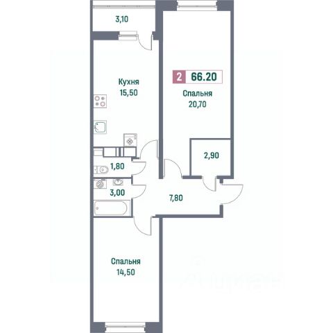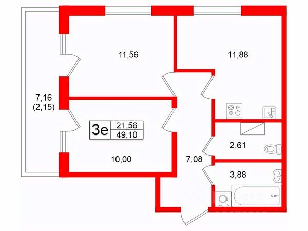 Продается 2-комн. квартира в ЖК "Аквилон Рива" на 11 этаже. Общая площадь: 56.95 кв.м., площадь просторной кухни-столовой: 20.55 кв.м. Высота потолков 2.73 м.