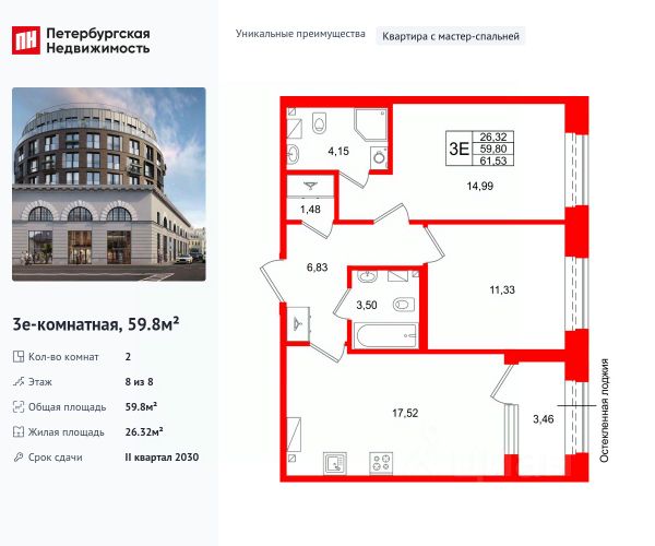 Квартира 46 в корпусе Карбон проекта бизнес-класса "Башни Элемент". "Башни Элемент" новый жилой проект бизнес-класса на Васильевском острове от девелоперской компании "ELEMENТ". В его составе 5 башен, две из которых соединены первым в Санкт-Петербурге "небесным мостом" с клубной инфраструктурой. Первая линия Финского залива (южная часть намыва Васильевского острова), 80% квартир с видом на воду Футуристичная архитектура от "А.Лен" 5 разновысотных башен: КАРБОН, КУПРУМ, ТИТАН, ПЛАТИНА и ВОЛЬФРАМ (от 18 до 22 этажей) 1026 квартир от студий до 6-комнатных планировок формата "евро", в башнях ТИТАН и ПЛАТИНА 12 видовых пентхаусов Многофункциональный зал для событий, гостиная с кухонной зоной и террасой, коворкинг с "тихими" кабинетами, залы для йоги и персональных тренировок, комната для медитаций, кинозал, библиотека с гостиной и появятся в клубном пространстве "небесного моста" на площади 1000 м2 В стилобатной части проекта "ELEMENT" создаст инфраструктуру, ориентированную в том числе на поколение "альфа" IT-школу с мультимодальным обучением, образовательно-развлекательный кластер, творческие мастерские, а также семейный центр с рестораном и фитнес-клуб с 25-метровым бассейном, тренажерным залом и фитнес-зоной Ландшафтный парк со спортивными зонами, детскими площадками и местами для отдыха площадью 2600 м2 Подземный паркинг с двухуровневым хранением на 552 авто, еще 88 мест на открытой автостоянке ELEMENT создаёт инновационные жилые и коммерческие объекты в Санкт-Петербурге и Москве, которые устанавливают новые стандарты эффективной жизни в мегаполисах.
