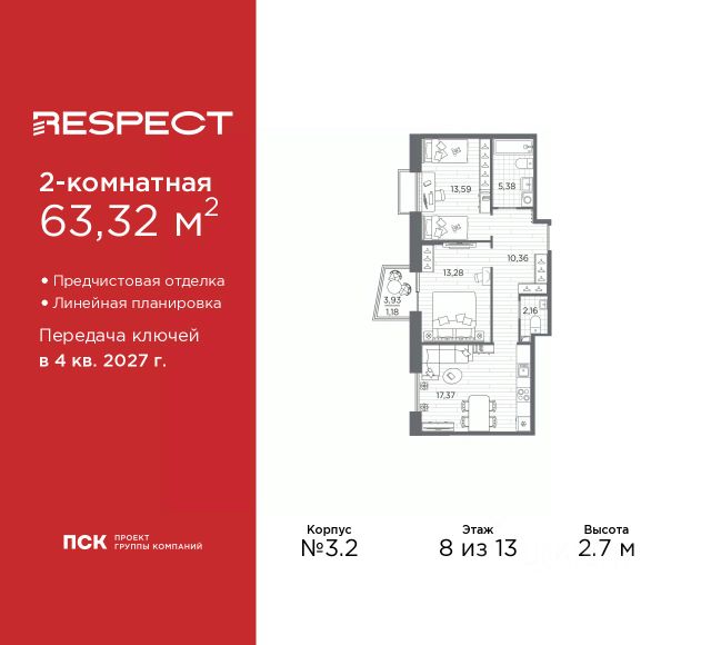 Продаётся 2-комн. квартира площадью 60,5 кв.м на 1 этаже 13 этажного дома (Корпус 5, Секция 2) проекта ПИК Кантемировская 11. Светлый просторный подъезд на уровне земли, функциональная планировка, большие окна, c отделкой. Жилой район "Кантемировская 11" расположен в Выборгском районе Санкт-Петербурга, в 5 минутах пешком от станции метро "Лесная". До Кантемировского моста и живописной Выборгской набережной всего 10 минут пешком. Проект включает в себя семь жилых корпусов средней этажности - от 9 до 13 этажей. Все квартиры - сразу с готовой отделкой: вам не придётся тратить время на ремонт. В "Кантемировской 11" есть детский сад и начальная школа, которые разместились в историческом здании начала XX века. Мы бережно сохранили фасад в кирпичном стиле с элементами модерна, а само здание переделали - например, внутри появились два бассейна. Во всех помещениях много света благодаря огромным окнам и зенитным фонарям на крыше. Территория проекта будет благоустроена в соответствии с высокими стандартами ПИК: между домами появятся дворы-парки без машин, с зелёными газонами и взрослыми деревьями, детскими площадками и зонами для отдыха. Первые этажи займут магазины, кофейни, аптеки, салоны красоты. На подземных этажах разместятся индивидуальные кладовые для хранения сезонных и габаритных вещей, а для автомобилистов за пределами дворов появятся наземные паркинги. Рядом с "Кантемировской 11" сразу несколько крупных зелёных зон для отдыха на свежем воздухе. Например, Каменный остров и Ботанический сад Петра Великого, один из старейших в России. Недалеко уютный сад Александра Матросова. Артикул 890328 (Застройщик ООО "СПЕЦИАЛИЗИРОВАННЫЙ ЗАСТРОЙЩИК КАНТЕМИРОВСКАЯ") [cn_sbp_1552376] Продается 2-комнатная квартира в новостройке рядом с метро Лесная.