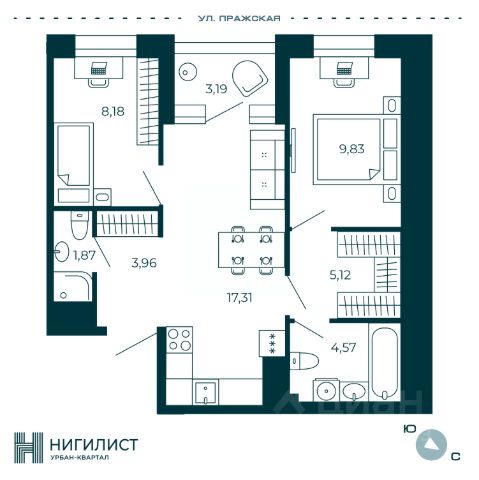 Продаётся 2-комнатная квартира в строящемся доме (Корпус 1), срок сдачи: I-кв. 2028, общей площадью 50.62 кв.м., на 3 этаже. Новый жилой дом от застройщика "СЗ БЛЭКСМИТ" расположен по адресу: Санкт-Петербург, Улица Фучика, д. 17, литера В.
