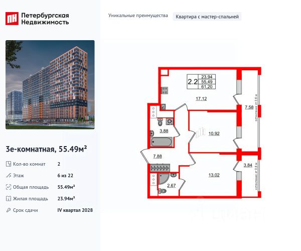 Продается 2-комнатная квартира в ЖК "Октябрьская набережная" на 13 этаже. Общая площадь составляет 62.50 кв. м. Квартира с чистовой отделкой . Жилой комплекс "Октябрьская набережная" располагается по адресу Санкт-Петербург, Невский. Октябрьская набережная - жилой комплекс на берегу Невы, который отличается живописными видами и удобным местоположением: в окрестностях ЖК есть всё необходимое для комфортной жизни. Расположение: • 2 минуты пешком до набережной Невы; • 7 минут до станции метро "Улица Дыбенко" на автомобиле; • 8 минут до Большого Обуховского моста на автомобиле; • 15 минут до ТРК "Лондон Молл" на автомобиле. Будущие жильцы могут обустроить квартиру по своему вкусу: предлагается 2 вида отделки - уютный темный "Comfort Wood" и легкий светлый "Comfort Stone". Отделка выполняется из качественных материалов: прочный ламинат с фактурой светлого дерева или белого камня, светлые обои под покраску, лаконичные межкомнатные двери. Вход в парадные расположен на уровне земли и создает доступную среду для пожилых людей, людей с ограниченными возможностями и мам с колясками. На цокольном этаже находятся кладовые, которые позволят освободить пространство квартиры от лишних вещей. Во всех парадных расположены колясочные, рядом с ними - велопарковки. На территории комплекса есть всё для любителей активного отдыха: спортивные площадки, уличные тренажеры, велодорожки, места для игры в баскетбол и волейбол. Спортсмены могут насладиться живописными видами во время пробежки вдоль набережной. В зелёных и облагороженных дворах есть всё и для семей с детьми: тематические площадки, детский сад и даже школа. Комфортная среда для питомцев - еще одно преимущество "Октябрьской набережной": рядом с домами находится площадка для выгула собак. Для удобства автомобилистов на территории комплекса устроены крытые паркинги с безопасными охраняемыми выездами и большим количеством машино-мест. В пешей доступности расположены супермаркеты, кафе, парикмахерские, отделения банков. Преимущества: • Первая береговая линия • Двор без машин • Доступная среда • Развитая инфраструктура • Школа и детский сад во дворе • Близость к метро Успейте приобрести квартиру на выгодных условиях! Чтобы узнать подробности, обращайтесь за консультацией по телефону. Продается 2-комнатная квартира в новостройке рядом с метро Пролетарская.