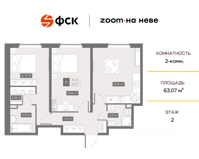 Цена со скидкой до 30% в прямой продаже от застройщика — только в этом месяце. При покупке апартаментов - паркинг за полцены. На все апартаменты действует беспроцентная рассрочка. Купите на распродаже! Покупка недвижимости в Zoom на Неве сейчас со скидкой до 30% позволит через 2 года получить доход до 6 300 000 руб. Роскошные виды на Неву. 2-к апартамент в комплексе класса бизнес-лайт Zoom на Неве на 4-м этаже. Общая площадь 51,75. Без отделки. Zoom на Неве расположен в новом месте силы рядом с центром города на первой линии Октябрьской набережной в Невском районе, всего в 7 км от исторической части Санкт-Петербурга. Большой выбор эргономичных и максимально продуманных планировок позволит каждому найти вариант по душе. Панорамные виды на Неву, благоустроенные дворы, детская игровая комната, подземный паркинг, коммерческие зоны на первом этаже, это и многое другое делает Zoom на Неве идеальным местом для жизни. Особенности: - Панорамные виды на Неву и город; - 10 мин. до Парка Строителей, 15 мин. до Лондон-молла, Ленты, Максидома, 15 мин. до метро "ул. Дыбенко", 12 мин. до КАД, 10 мин. до центра; - Единая архитектурная концепция. Сдержанные и монументальные фасады в неоклассическом стиле; - Парадный лобби для жильцов. Единый вход в комплекс с администратором, зоной ресепшн и охраной, зоной для бесконтактной доставки посылок и еды; - Подземный отапливаемый паркинг с доступом из парадной; - Доступно 3 варианта отделки на выбор: черновая, предчистовая (White Box) и чистовая; - Зоны отдыха для взрослых и детей, Wi-Fi-покрытие во дворе и в паркинге, зоны для питомцев, арт-объекты и много другое. В шаговой доступности вся необходимая инфраструктура от детских садов и школ до супермаркетов и салонов красоты; - Все происходящее контролируется видеокамерами, а покой внутренней территории и безопасность ваших детей гарантируется полным отсутствием транспорта во дворах в концепции "без машин". Продам 2-комнатную квартиру в новостройке рядом с метро Улица Дыбенко.