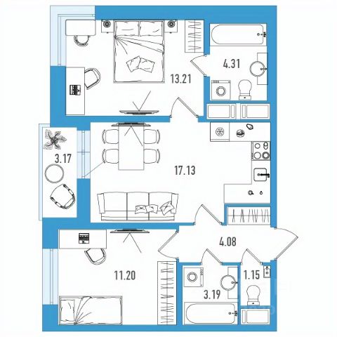 Продается квартира площадью 53.14 м² на 15 этаже 2 секции в Речной квартал от компании ГК "ТРЕСТ". Площадь кухни 15.66 м². Семейный жилой комплекс комфорт-класса "Речной квартал" от Группы компаний "ТРЕСТ" расположен в Невском районе Петербурга на пересечении Октябрьской набережной и Русановской улицы. Первая очередь квартала состоит из трёх корпусов, расположенных лучеобразно, чтобы максимально использовать естественное освещение и обеспечить видовые точки на локацию. Проект выделяется современными архитектурными решениями и дизайном. Концепция развития и благоустройства придомовой территории разделена на зоны отдыха, досуга и игровые площадки с учетом возраста и потребностей детей и взрослых. Квартал рассчитан на семейных покупателей, поэтому здесь нет студий: только одно-, двух- и трёхкомнатные квартиры. В проекте представлены квартиры с кухнями-гостиными, мастер-спальнями, гардеробными и кладовыми. "Речной квартал" - современный жилой комплекс с разнообразным благоустройством придомовой территории, просторными европланировками, закрытой охраняемой территорией и подземными паркингами. На территории комплекса уже функционирует детский сад на 110 мест. Также в квартале будет построена общеобразовательная школа на 475 мест с бассейном и стадионом. Открытие школы запланировано на 2029 год. Квартиры в ЖК "Речной квартал" можно приобрести с готовой отделкой от застройщика. Для покупателей квартир предусмотрено два варианта чистовой отделки "Ваниль" и "Шоколад". Чистовая отделка в квартирах ЖК "Речной квартал" предполагает монтаж натяжных потолков, укладку ламината, оклейку стен обоями под покраску, установку светильников и межкомнатных дверей. При отделке новой квартиры применяются качественные, натуральные и экологичные материалы, монтируется стильная импортная сантехника европейских брендов. В объявлении указана стоимость квартиры при 100% оплате. При других формах оплаты - базовую стоимость квартиры уточняейте на официальном сайте компании или у менеджера отдела продаж. Застройщик АО "Специализированный застройщик "Строительный трест". Продается 2-комнатная квартира в новостройке в округе Народный в Санкт-Петербурге.